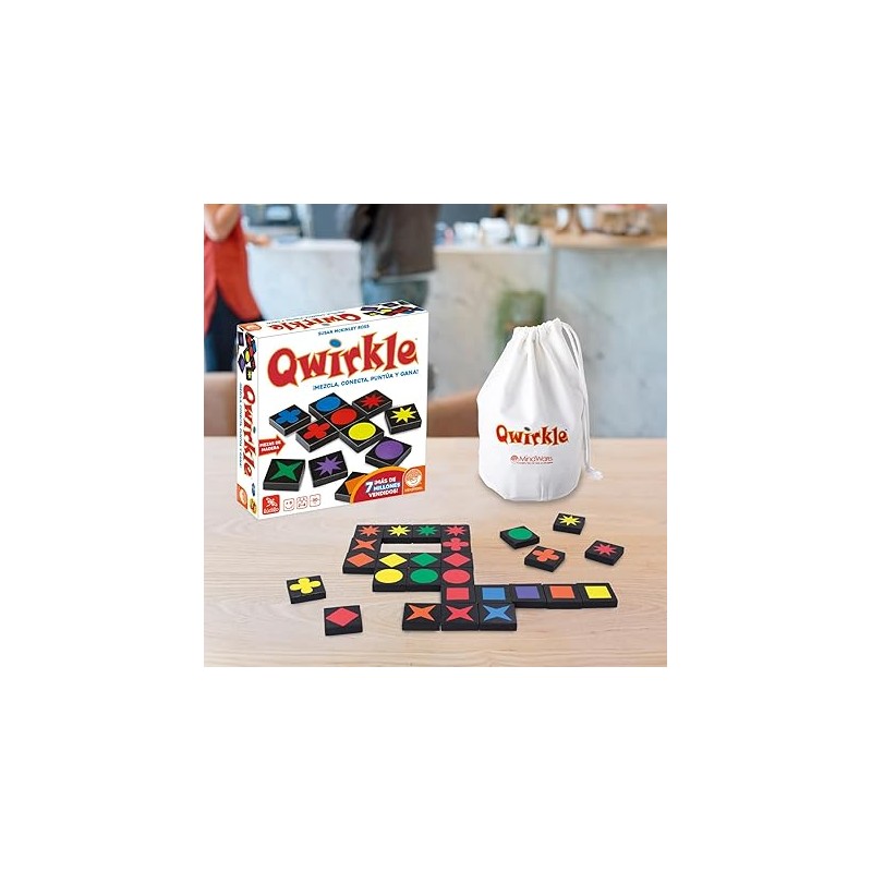 JUEGOS DE MESA: Qwirkle es un juego mesa de táctica que consiste en conectar colores y formas. Planifica bien los movimientos y la estrategia. Puntúa creando líneas de fichas del mismo color o forma (sin repetirlas). ¡Crea una línea de seis y puntúa un Qwirkle!